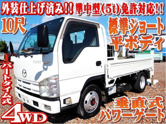 外装仕上げ済み!!準中型(5t限定)免許対応!!4WD!!4ナンバー!!10尺ボディ!!タイタン標準ショートの平ボディ垂直式パワーゲート付になります。